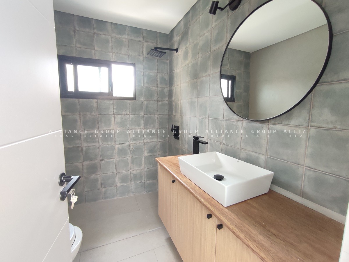 En la segunda planta se encuentran los tres dormitorios el principal al frente y los secundarios hacia atrás. En posición central un gran baño completo con las mejores terminaciones interiores y ventilación natural. Ambos baños, ya sea el de PB como el de PA totalmente equipados, con mueble y bacha cerámica, espejo haciendo juego con la grifería y luminarias. En posición de tránsito en pasillo mueble para instalar calefón.