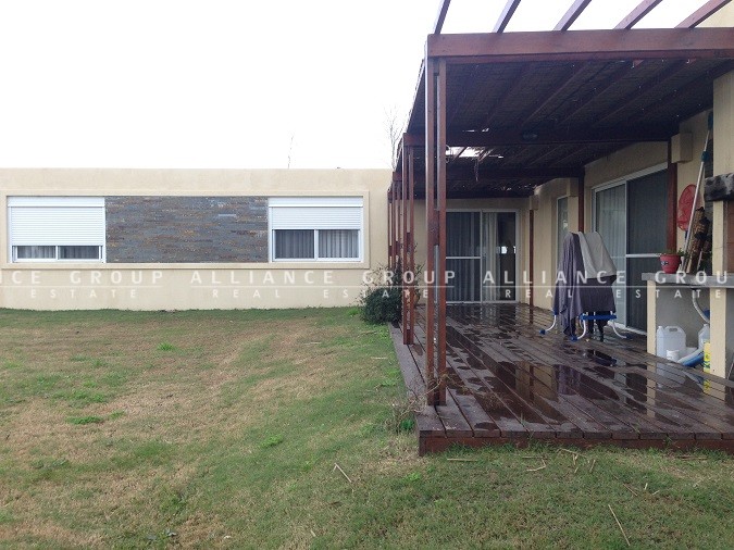 En el interno se desarrolla un hall de acceso central el cual divide el acceso entre el living-comedor y el estar díario con la cocina, ambios ambientes cuentan con hogar y salida al fondo con deck y parrillero.. Toilette y despojador en el area social. El estar es de dimensiones interesantes, con division hacia la cocina con una barra central. La cocina cuenta con mesadas enfrentadas en L, bacha doble, y muebles tanto sobre como bajo mesada. Pasaje directo al lavadero, salida a cochera y servicio completo.