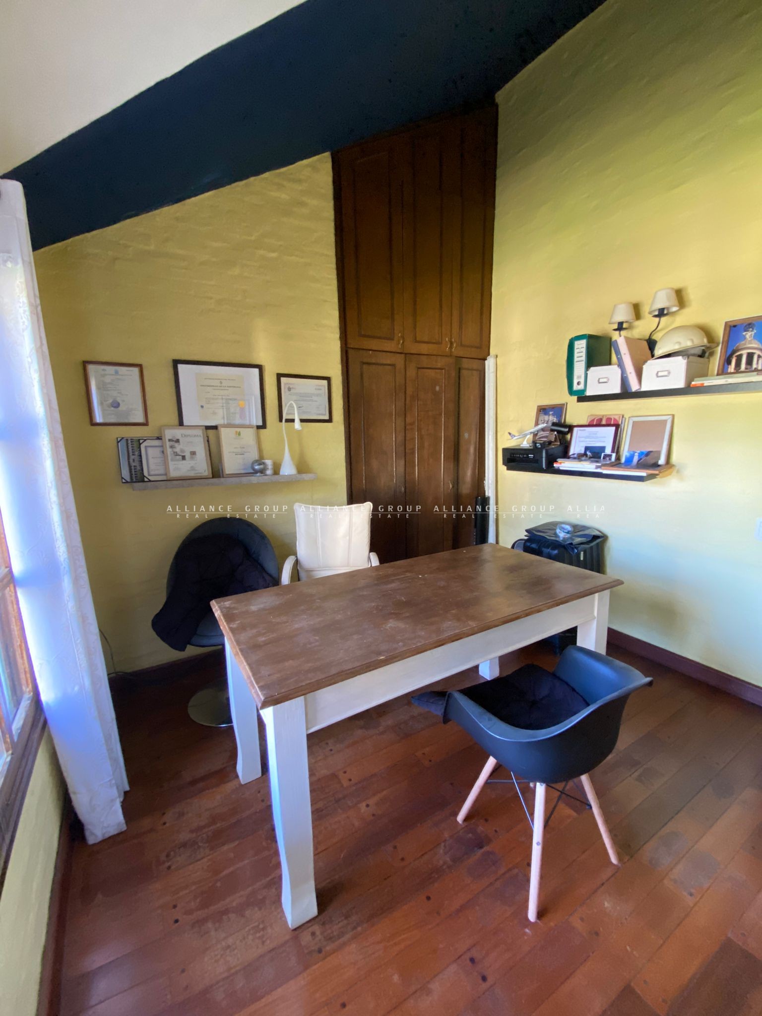 La casa principal al frente con un estilo de construcción colonial clásica, doble paredes de ladrillo, muy buena carpintería en todas las aberturas y ventanas, techo de losa con tejas.
