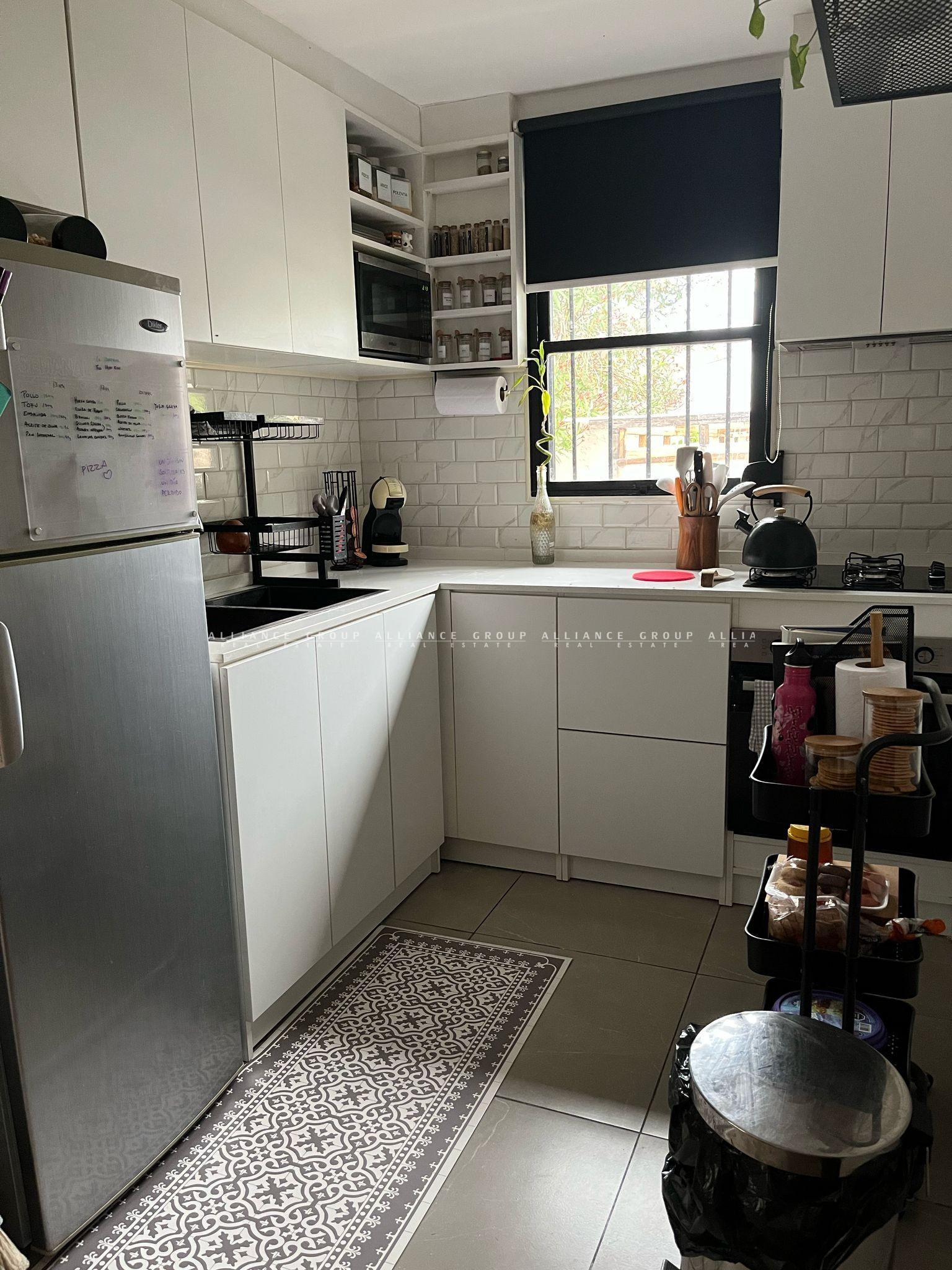 Cocina moderna con finas terminaciones, mesadas de Silestone, bacha de acero forjado, buena capacidad de muebles de muy buena calidad y ventana exterior.