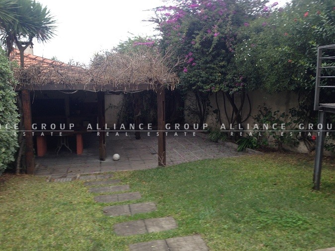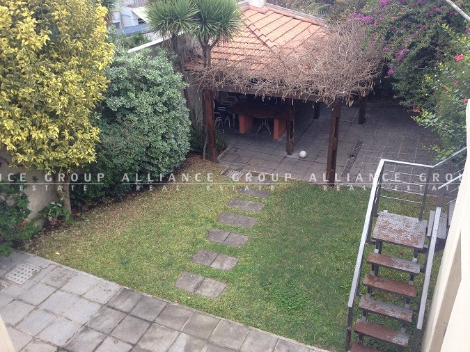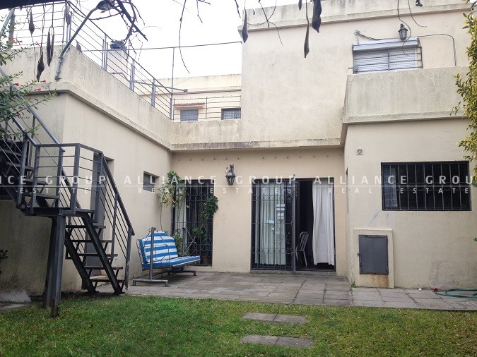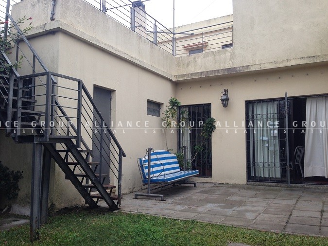 Fondo con verde, linda vegetación, acceso por escalera metálica hacia una terraza en planta alta de unos 20m² y parrillero techado en el final del padrón.