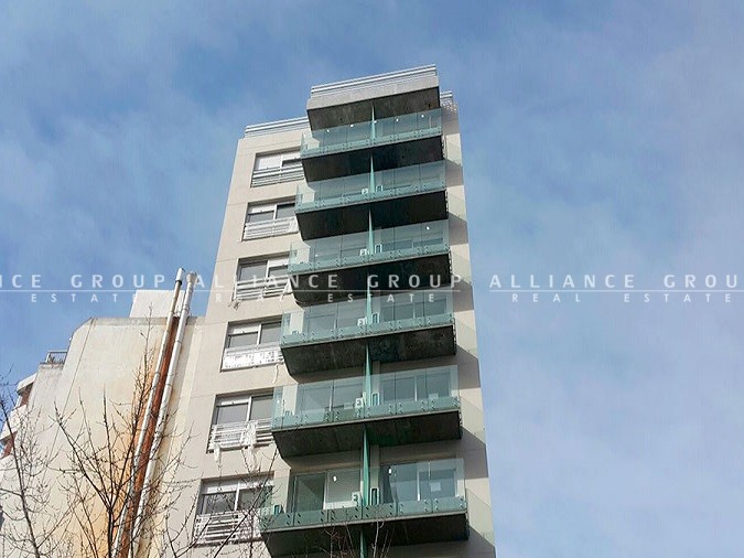 Edificio de 11 pisos más planta baja y dos subsuelos, con amplios monoambientes aptos para vivienda u oficina.