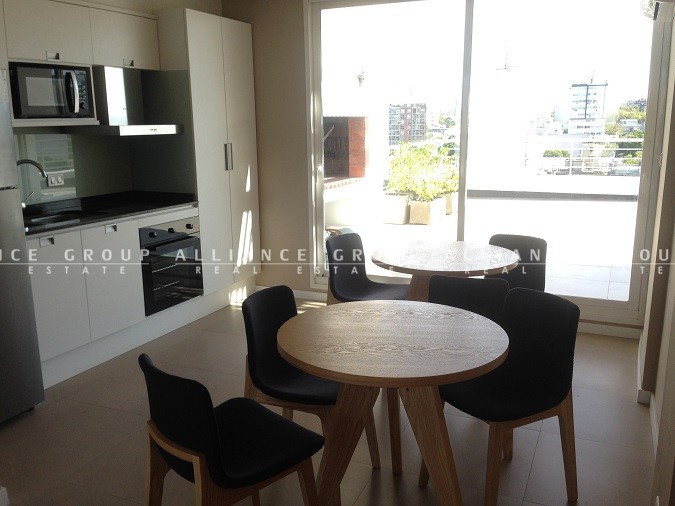 Estrena Agosto de 2017. Apartamento de 1 dormitorio, 2 baños, 1 en suite. Terraza en living comedor al frente y en dormitorio, cocina integrada. Posición de garage fijo.