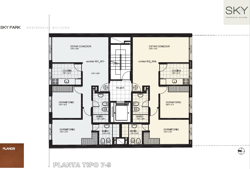 El edificio ofrece unidades de 1 y 2 dormitorios y Penthouse de 2 dormitorios.