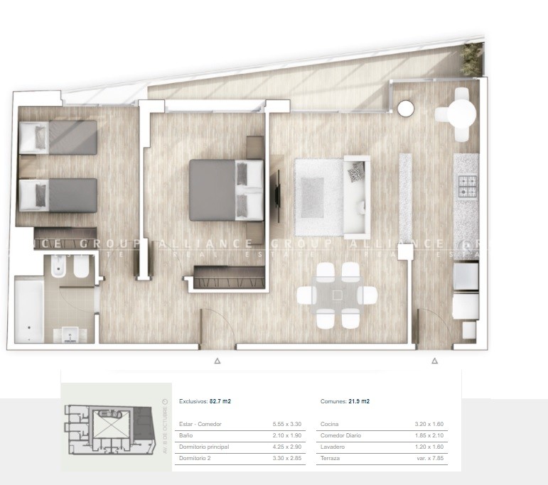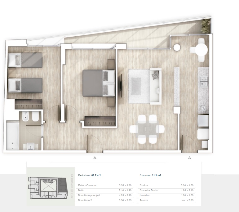 Los dormitorios al frente con salida a terraza, solo vea el plano adjunto para enteder de que estamos hablando en cuanto a tamaños