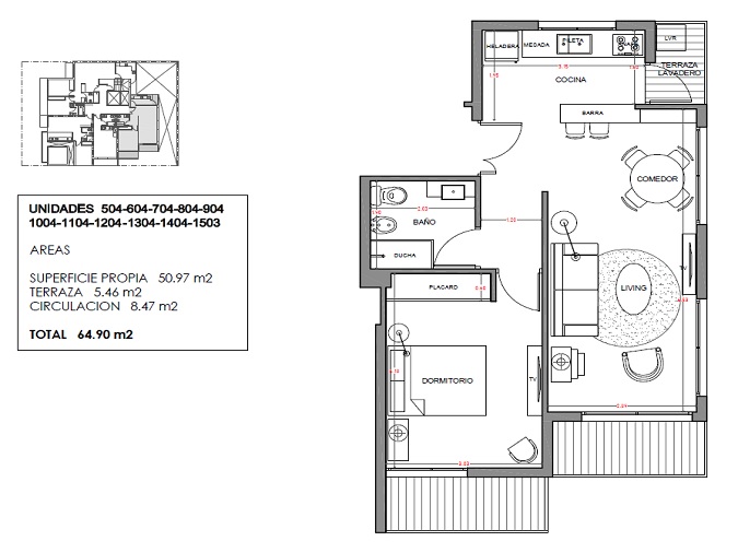 El proyecto cuenta con distintos tipos de plantas desde monoambientes con terrazas, 1 y 2 dormitorios, y algunas unidades con amplias terrazas.