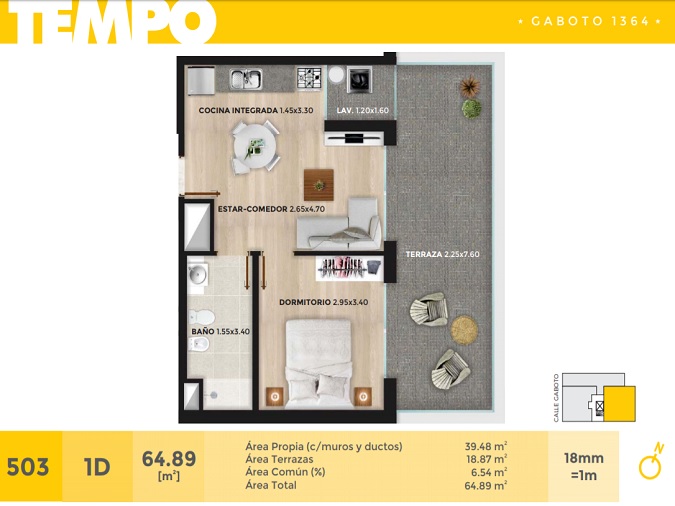 En este caso hacemos mención una unidad de 1 dormitorio estilo penthouse al contra-frente. Cocina integrada con posiblidad de dejarla definida y salida a terraza lavadero. Todo la planta se encuentra apaisada con orientación este, y cuenta con hermosa terraza con salida desde todos los ambientes.