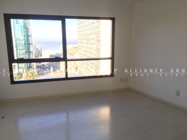 La oficina se encuentra en un piso alto con frente despejado y cerramientos tonalizados.