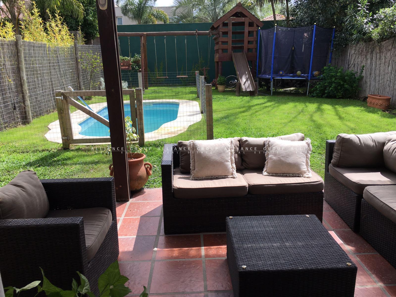 La misma dispone de un gran fondo con piscina y parrillero con pérgola