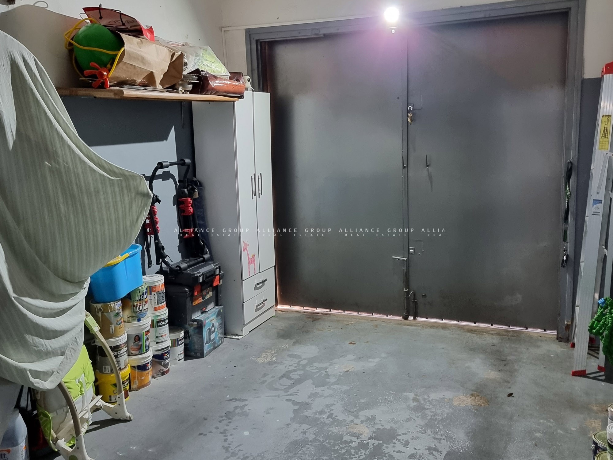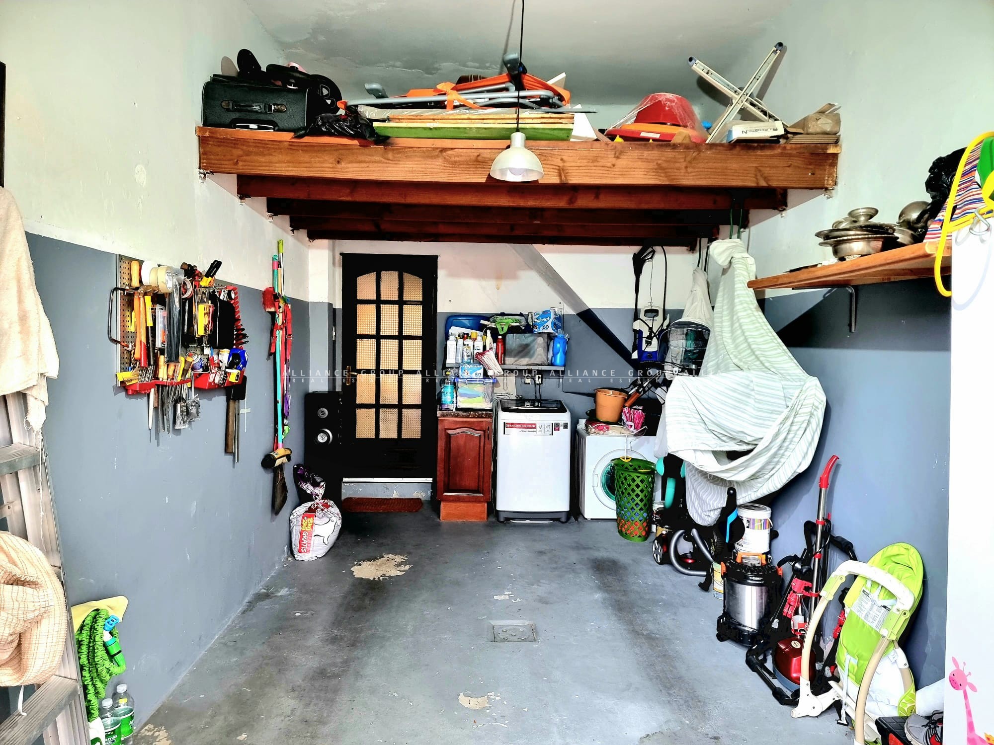 El garage es cerrado con acceso directo desde los internos de la casa, en dónde también vamos a poder encontrar la instalación para lavarropas, secarropas y se realizó un entrepiso de madera para poder utilizar como desahogo de almacenamiento.